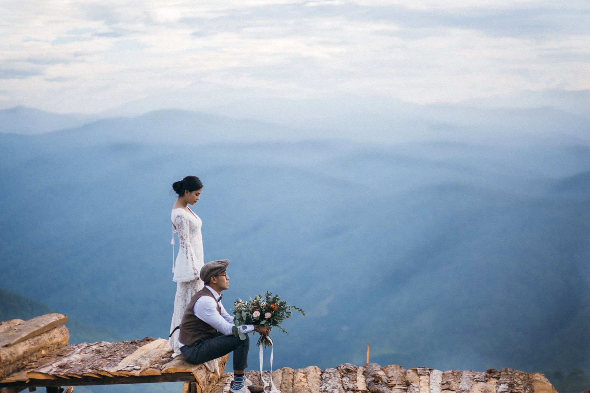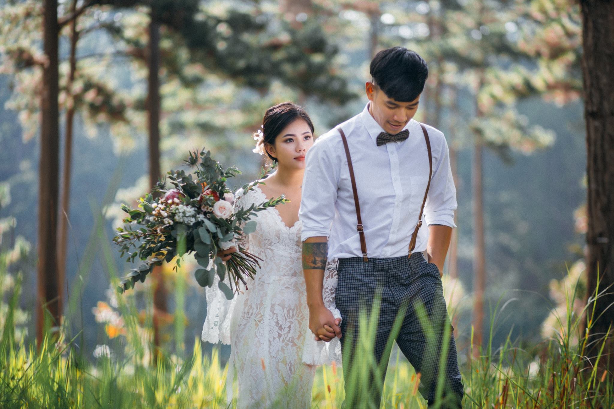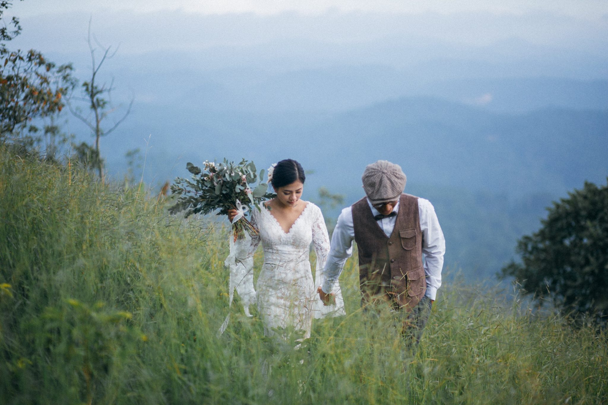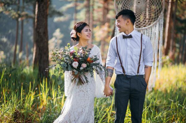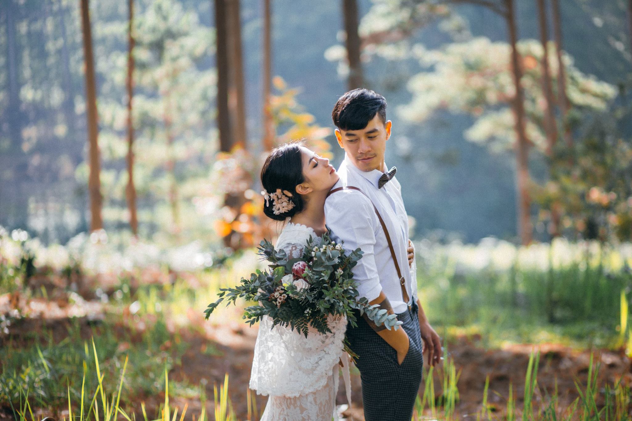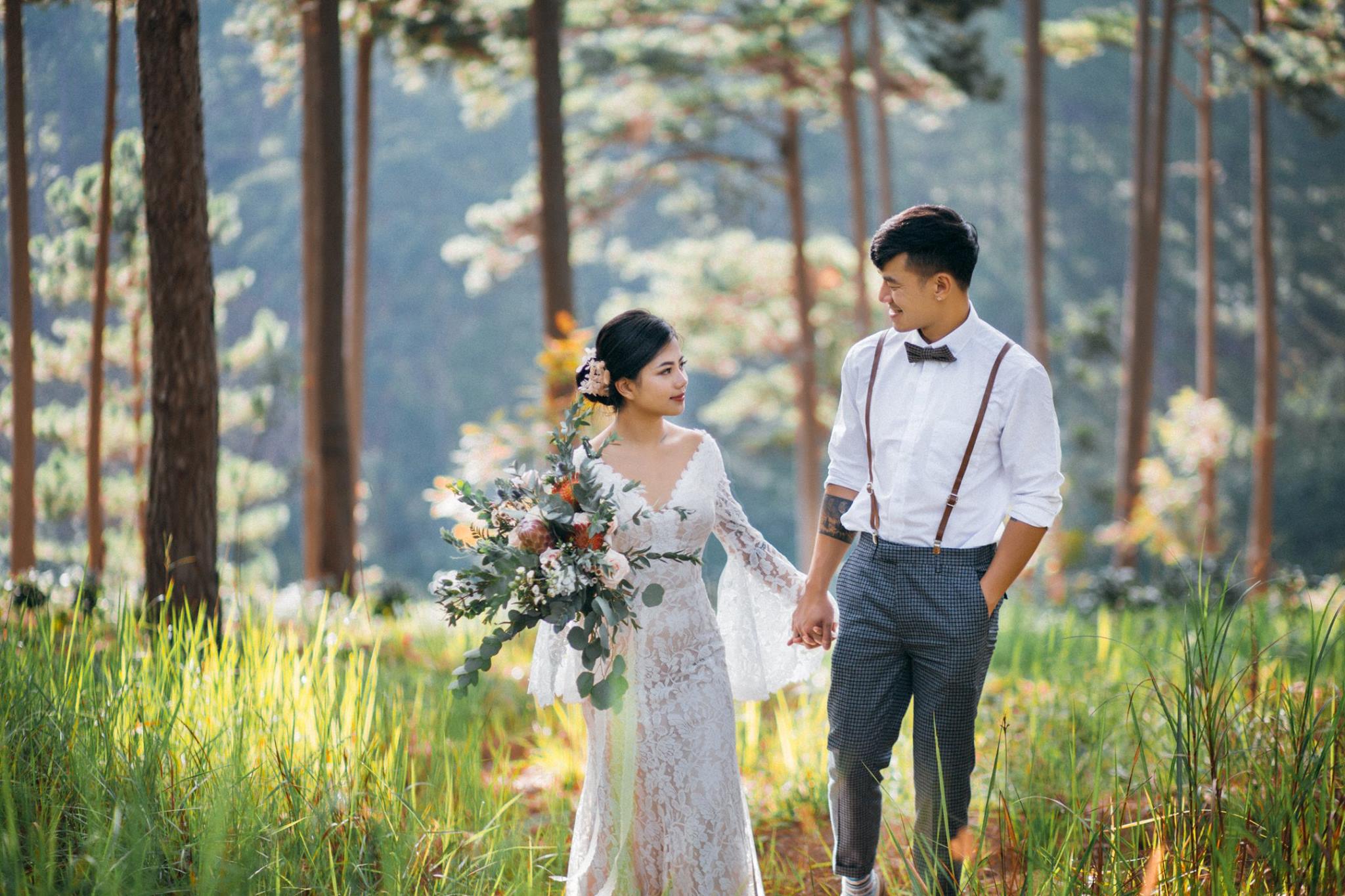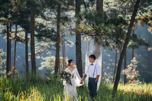 Một buổi chiều bình yên trên cao nguyên, nơi tình yêu hòa quyện cùng sắc vàng của nắng và sương mờ. Chúng tôi kể lại câu chuyện của họ bằng sự nhẹ nhàng và chân thực nhất.A peaceful afternoon on the highlands, where love blends with the golden sun and misty air. We retell their story with the utmost gentleness and authenticity.