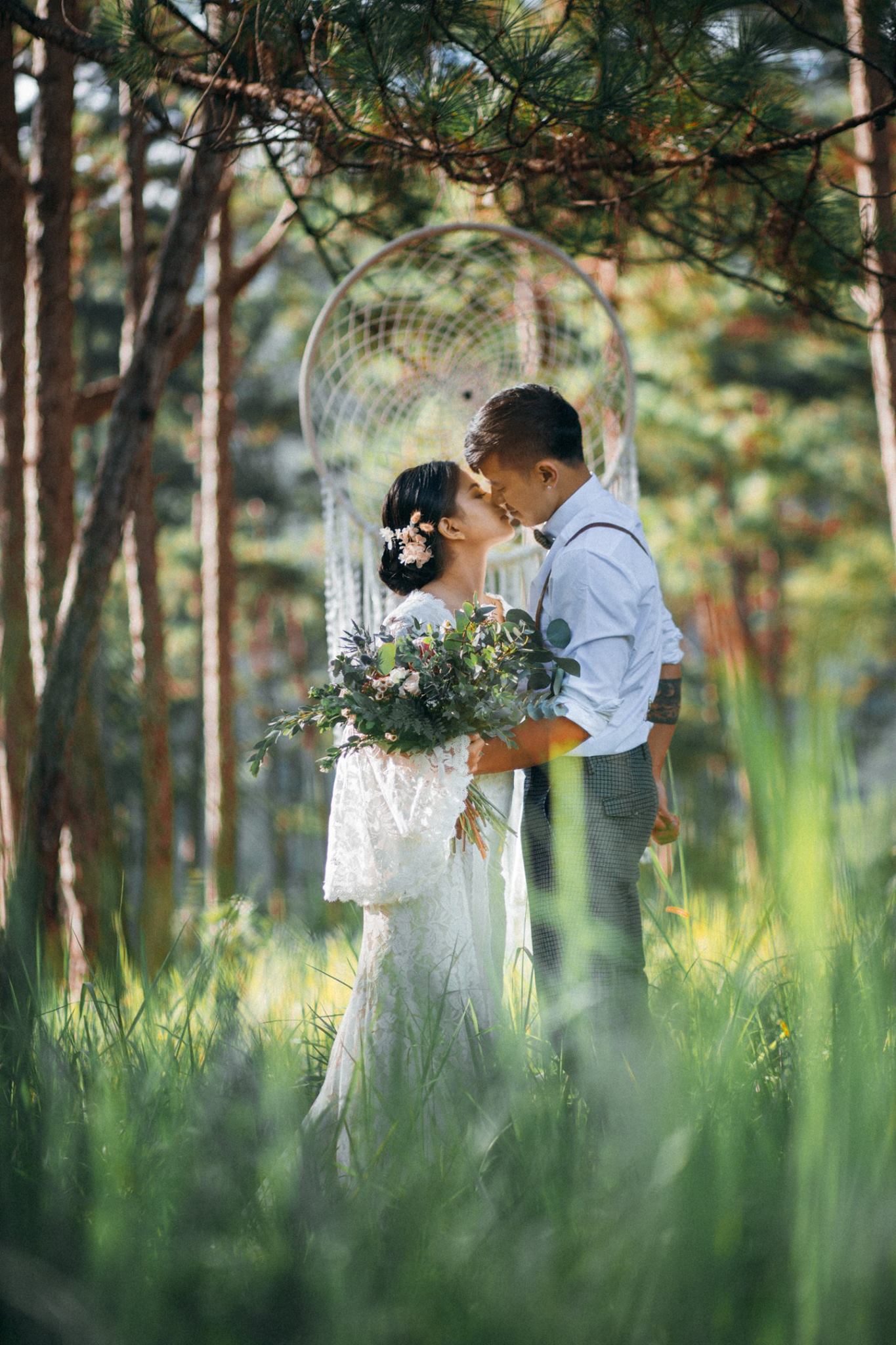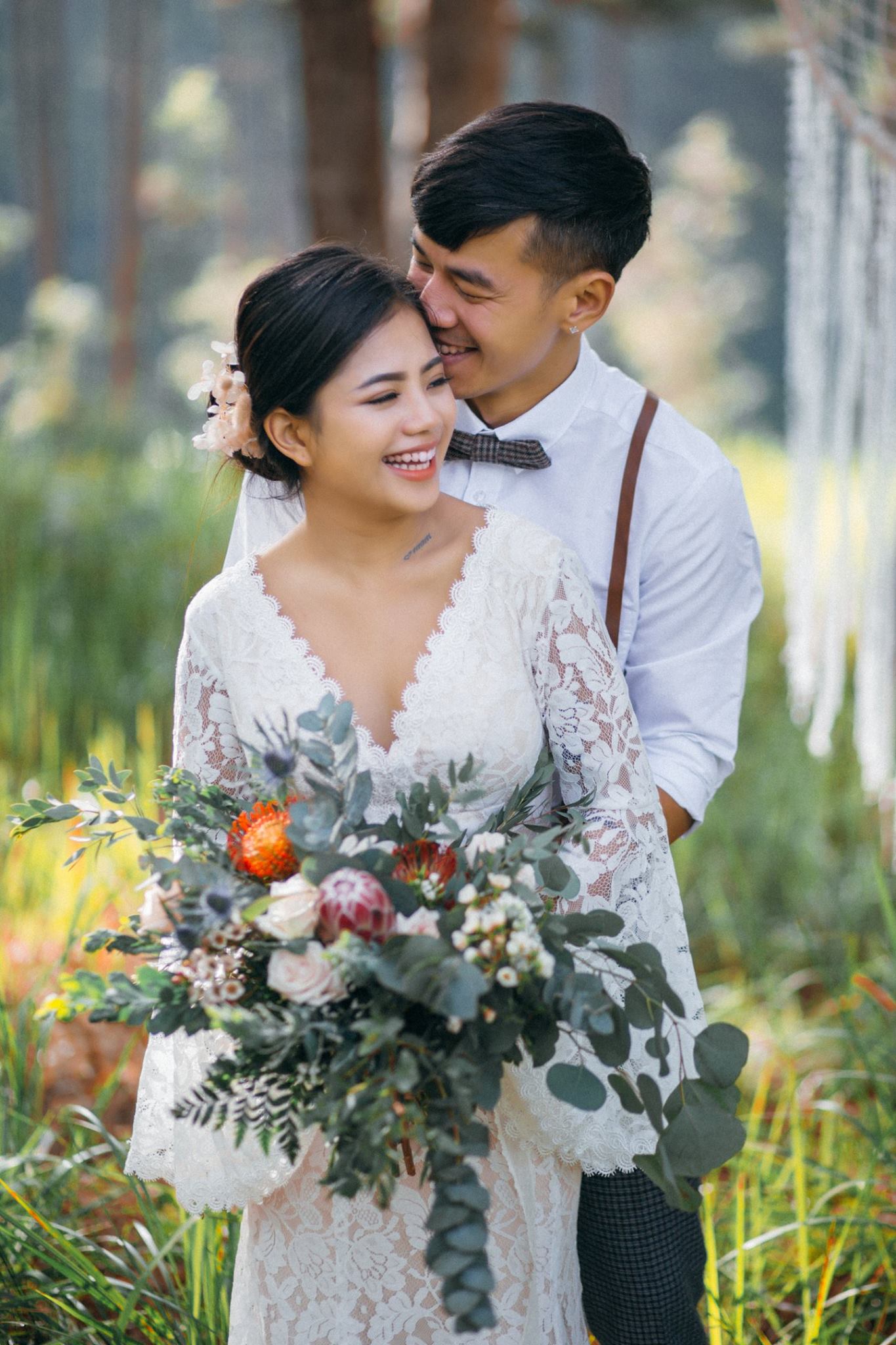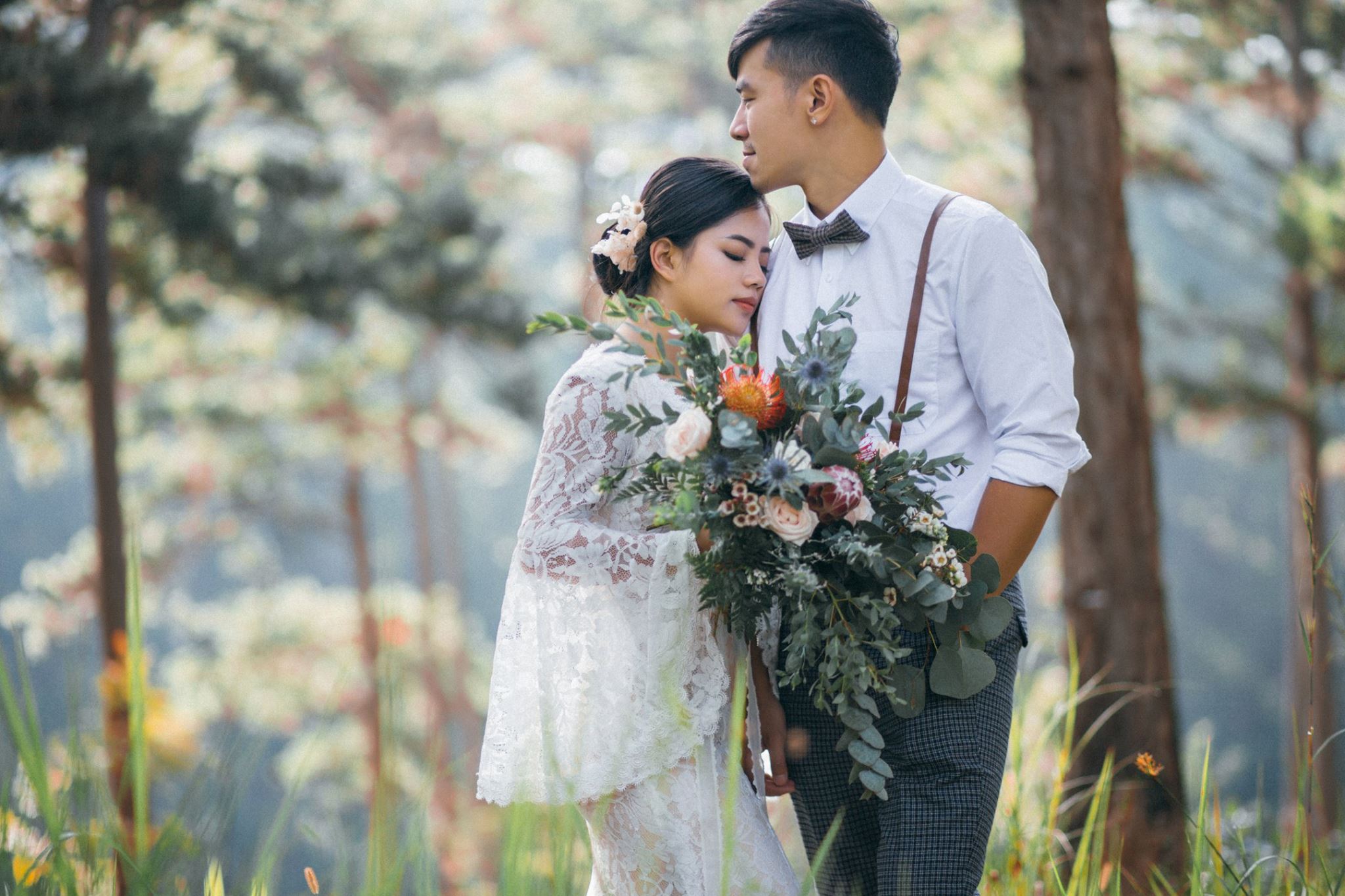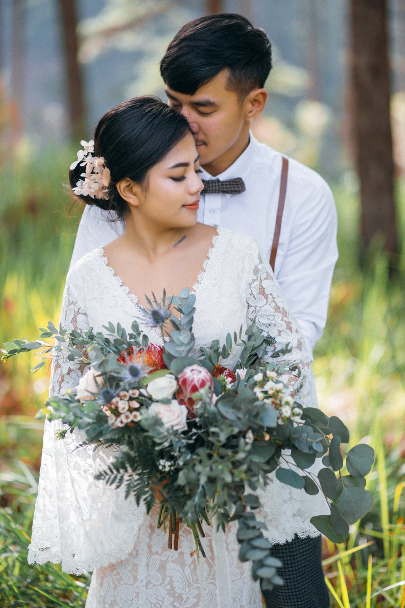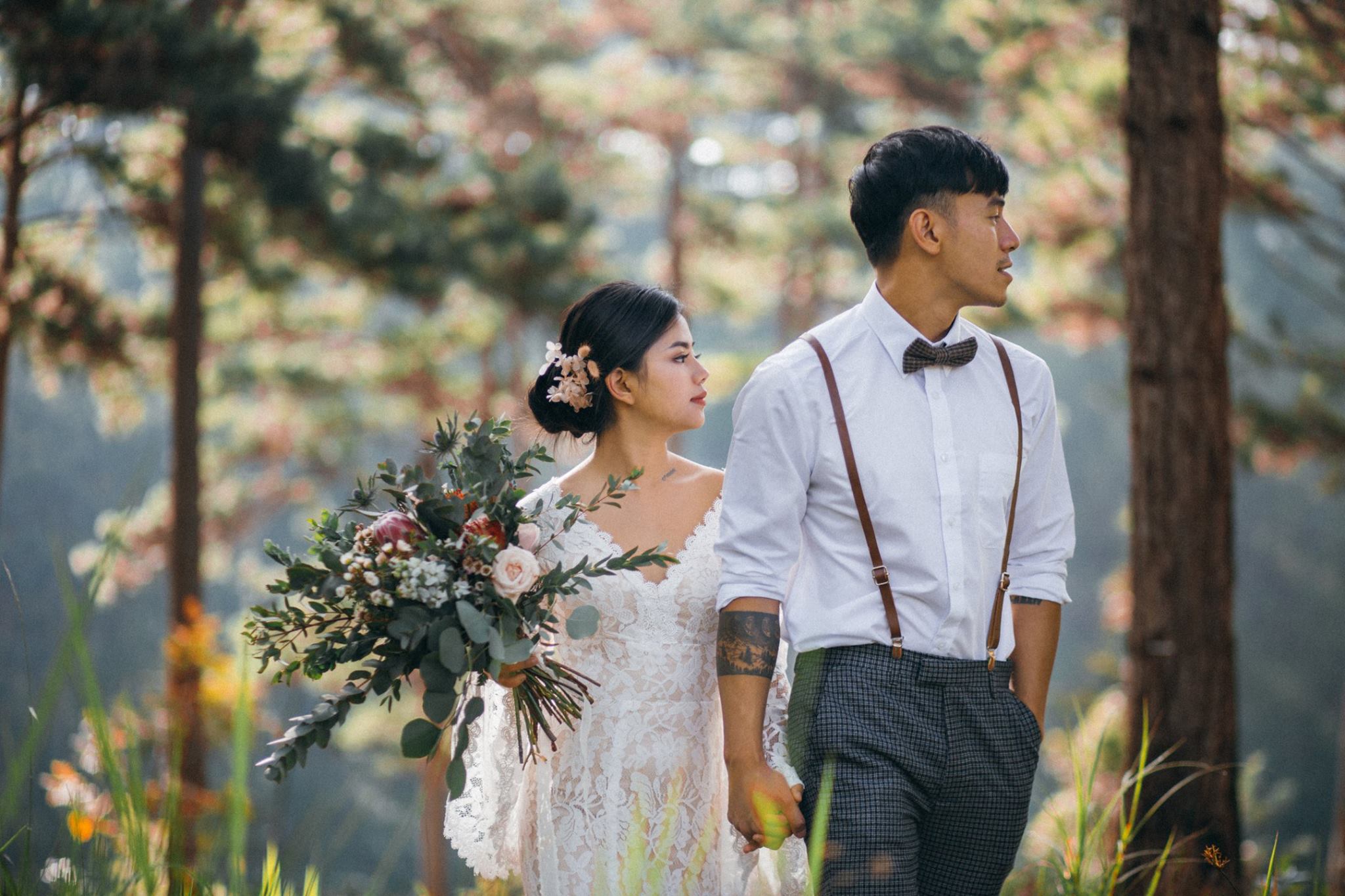 Một buổi chiều bình yên trên cao nguyên, nơi tình yêu hòa quyện cùng sắc vàng của nắng và sương mờ. Chúng tôi kể lại câu chuyện của họ bằng sự nhẹ nhàng và chân thực nhất.A peaceful afternoon on the highlands, where love blends with the golden sun and misty air. We retell their story with the utmost gentleness and authenticity.