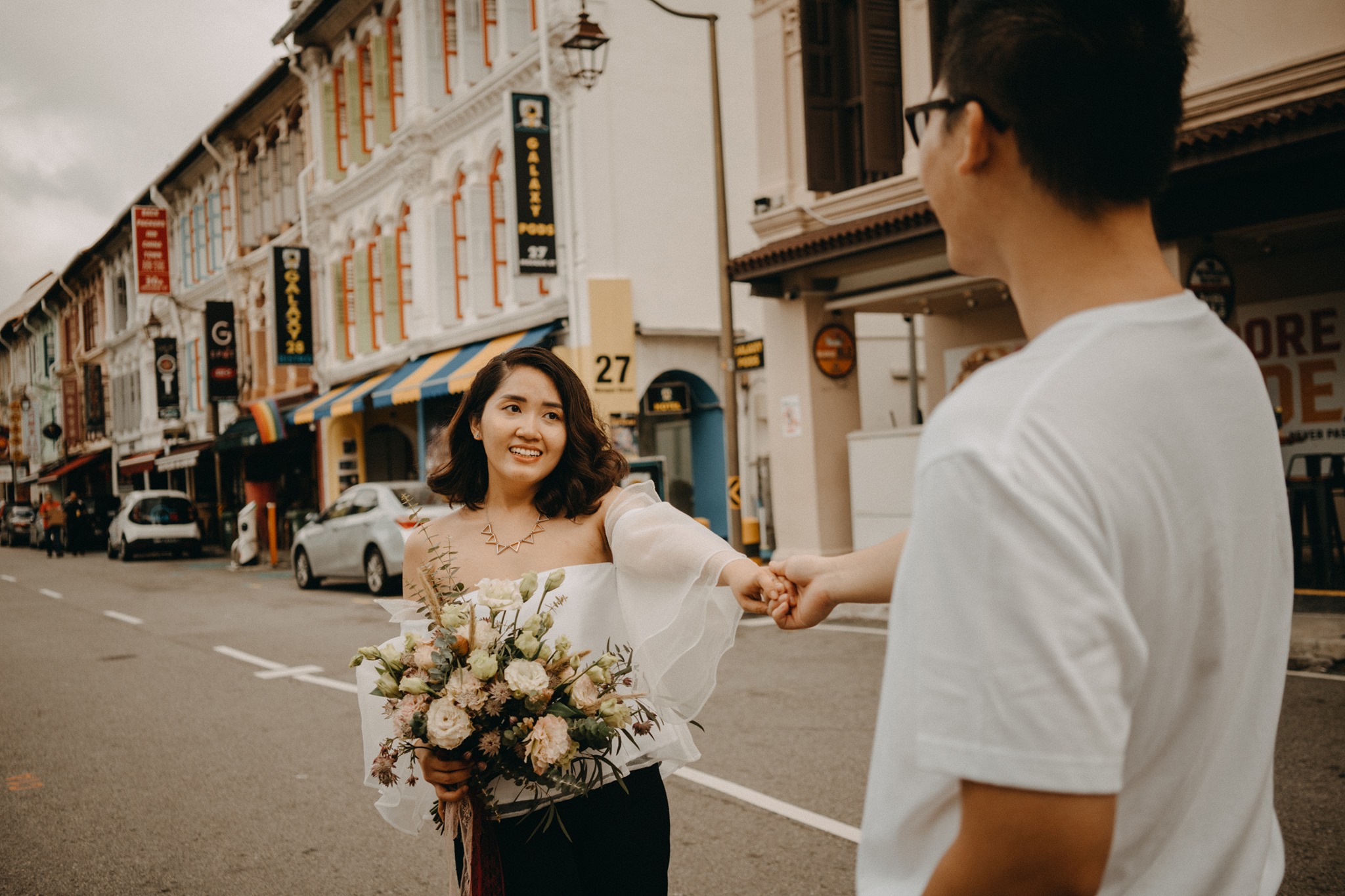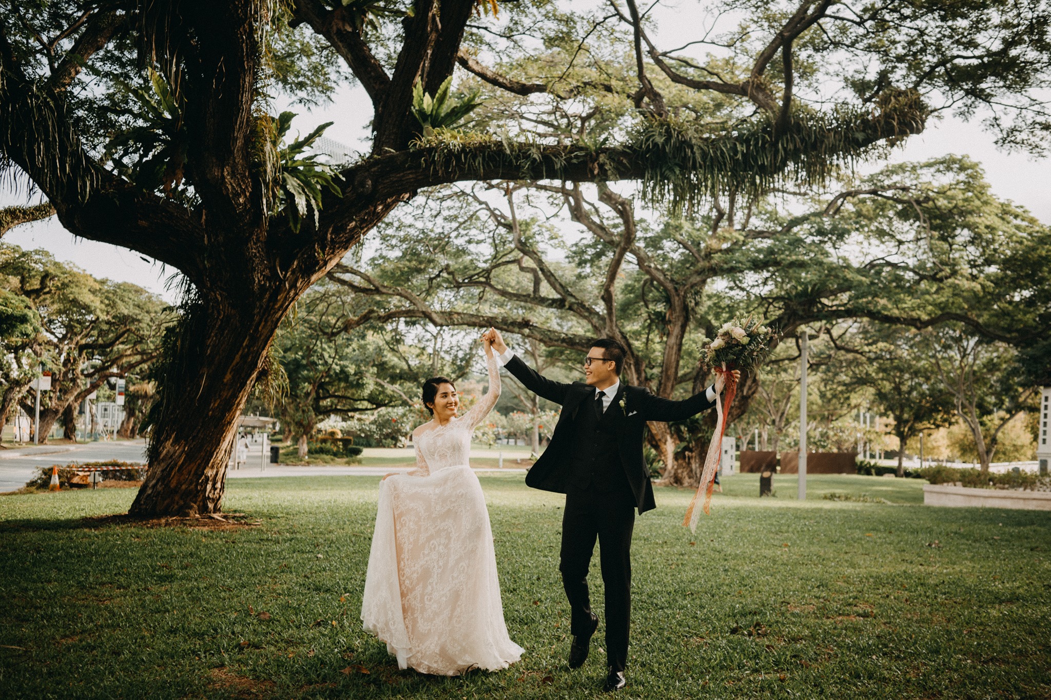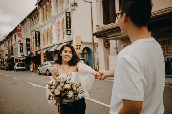 Đầu tháng 2 vừa qua, may mắn chúng mình có dịp ghé Singapore. Đi chụp trong nước nhiều nhưng đây là lần đầu tiên ekip mình xuất ngoại. Biết tin lịch chụp của mình, Cặp đôi Minh & Huong nhắn tin và thế là chúng mình cùng nhau có một bộ ảnh dễ thương tại đây. Singapore nhiều cây xanh cùng lối kiến trúc rất giống với kiểu của người Anh mà mình rất mê. Bộ ảnh này mình chụp ở một vài công viên và tất nhiên là có cả China Town nữa <3In early February, we were lucky enough to visit Singapore. While we've done many photoshoots domestically, this was the first time our team went abroad. Knowing about our photoshoot schedule, Minh & Huong messaged us, and we ended up having a lovely photoshoot together there. Singapore has lots of greenery and architecture that's very similar to the British style, which I really love. We took these photos in several parks and, of course, in Chinatown too <3